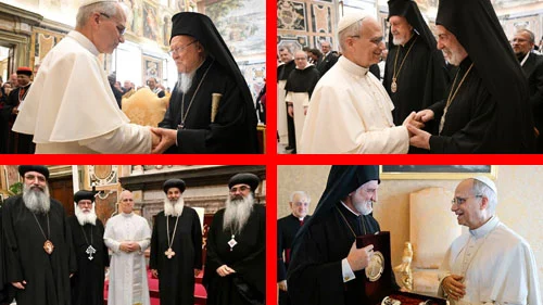 Si noti che secondo il vero insegnamento Cattolico coloro che deviano anche solo da un dogma della Chiesa o del Papato (per esempio gli “Ortodossi” e i Protestanti) non hanno “alcuna parte alla comunione Cattolica” (Leone XIII) e sono “alieni dal corpo di Cristo” (Eugenio IV).