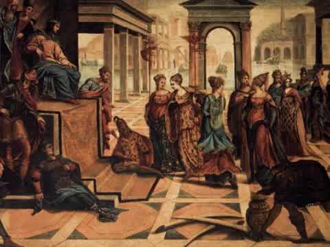 Re Salomone mostrò immediatamente la sua sapienza giudicando correttamente tra 2 donne litigantisi il medesimo figliolo. La gente rimase meravigliata.